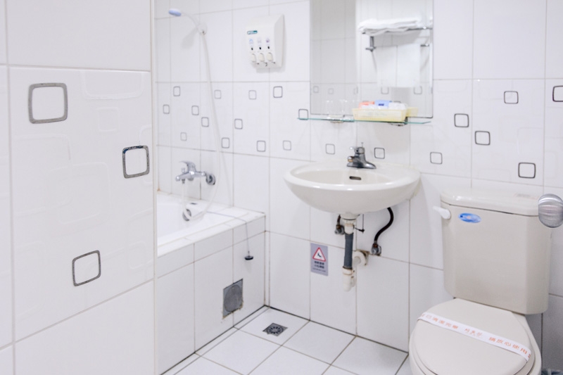 浴室備品:牙刷牙膏、刮鬍刀、浴帽、洗髮精、沐浴乳、洗面乳、浴巾。